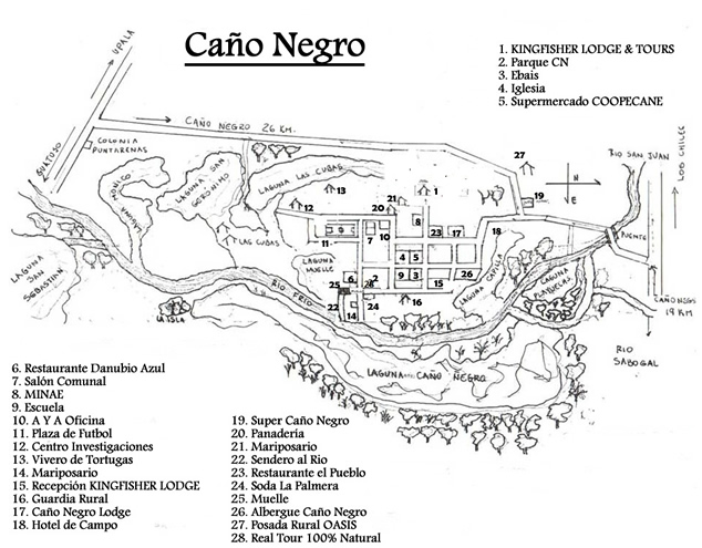 - You will reach the village of Caño Negro. Our hotel is next to the MINAET office.